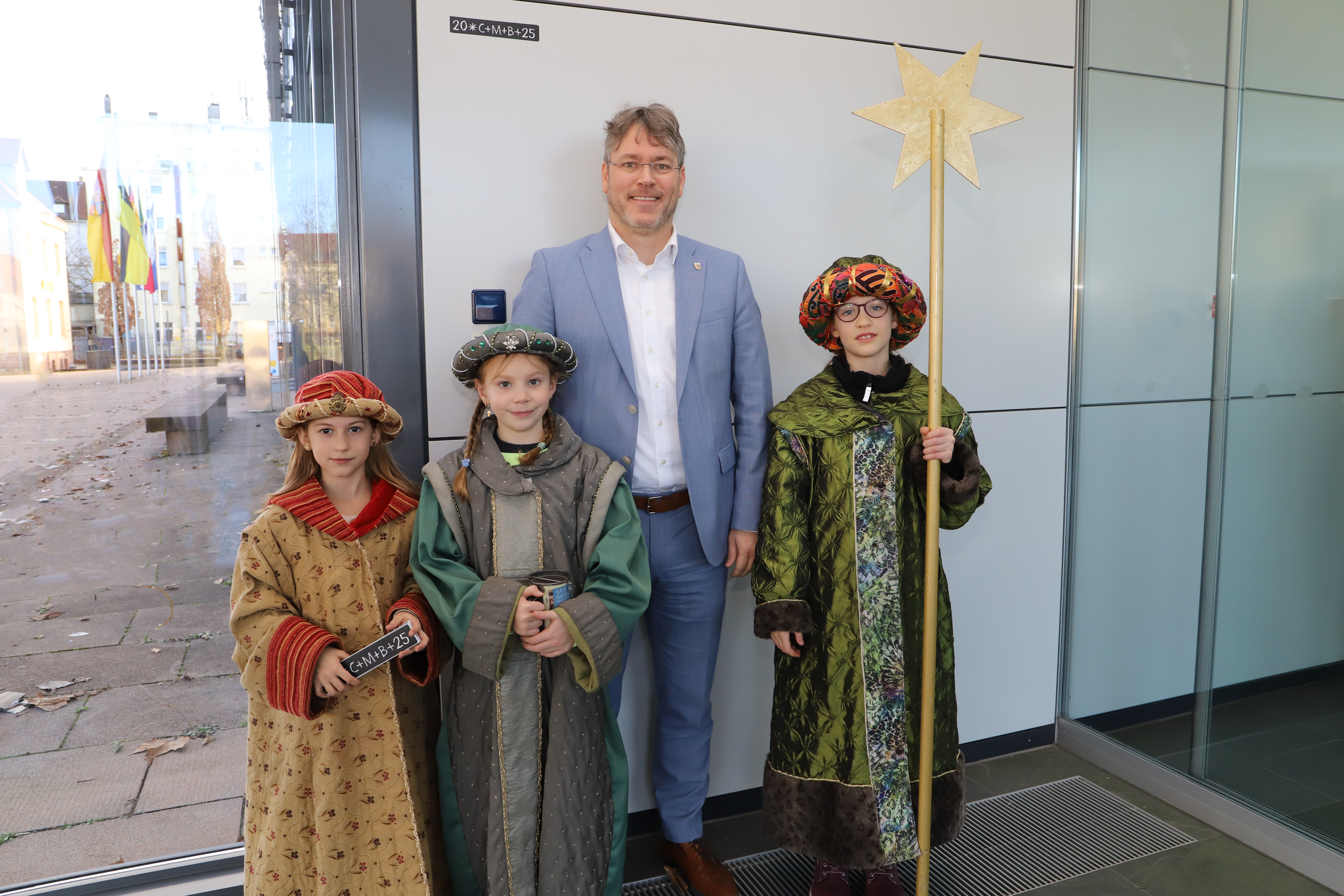 Laute Kinderstimmen waren am Dienstag aus dem Büro des Rastatter Landrats Prof. Dr. Christian Dusch zu hören. Dort hatte er am Nachmittag nämlich seinen königlichen Besuch empfangen. In lange Gewänder gehüllt und mit elegantem Kopfschmuck zogen die Sternsinger in das Landratsamt, um mit Liedern und Gedichten den Segen für 2025 zu überbringen.