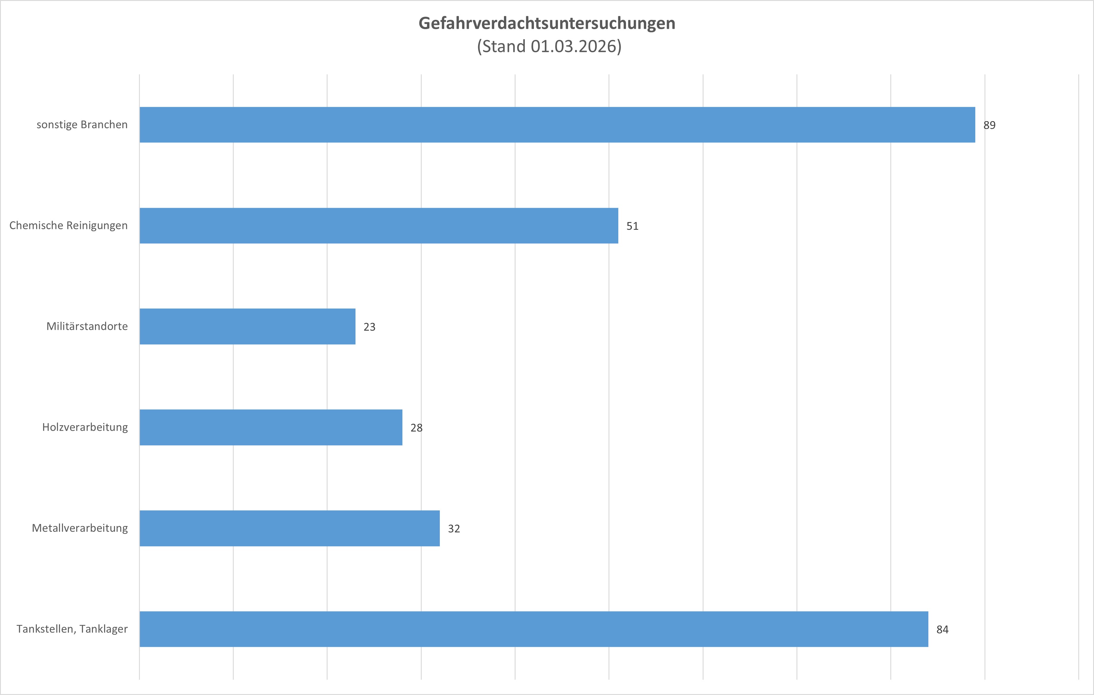 Seit Einführung des Bundesbodenschutzgesetzes 1998 wurden im Landkreis Rastatt 307 Gefahrverdachtsuntersuchungen durchgeführt. Die folgende Grafik stellt die Verteilung dieser Erkundungen auf die verschiedenen Branchen dar.