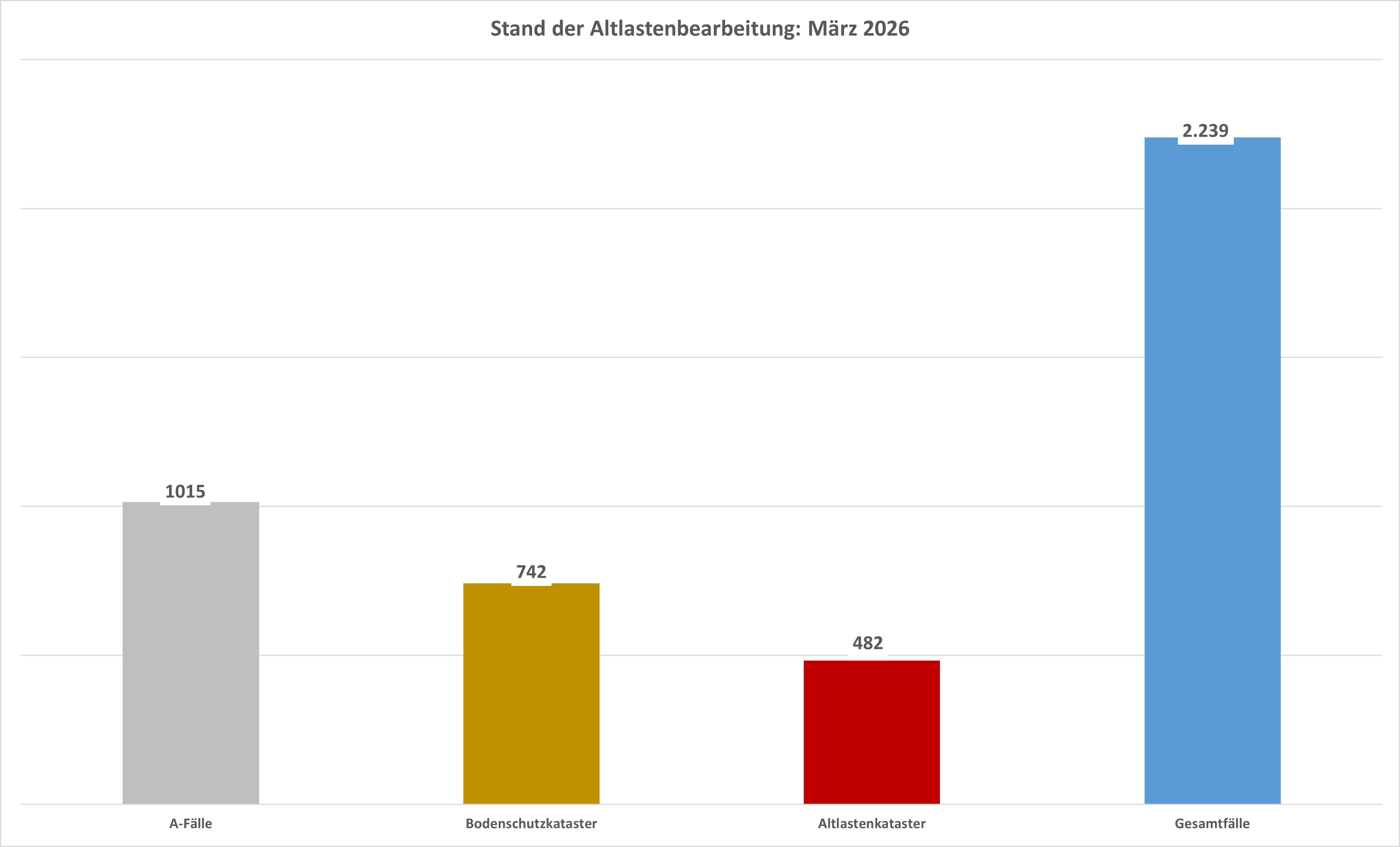 Der aktuelle Bearbeitungsstand der Altlasten und altlastverdächtigen Flächen ändert sich ständig. Durch Betriebs-Stilllegungen oder im Auftrag des Amts für Umwelt und Gewerbeaufsicht durchgeführte Erhebungen kommen neue Altlasten hinzu. Durch weitergehende Untersuchungen und Sanierungen können Flächen aus dem Altlastenkataster herausgenommen werden.