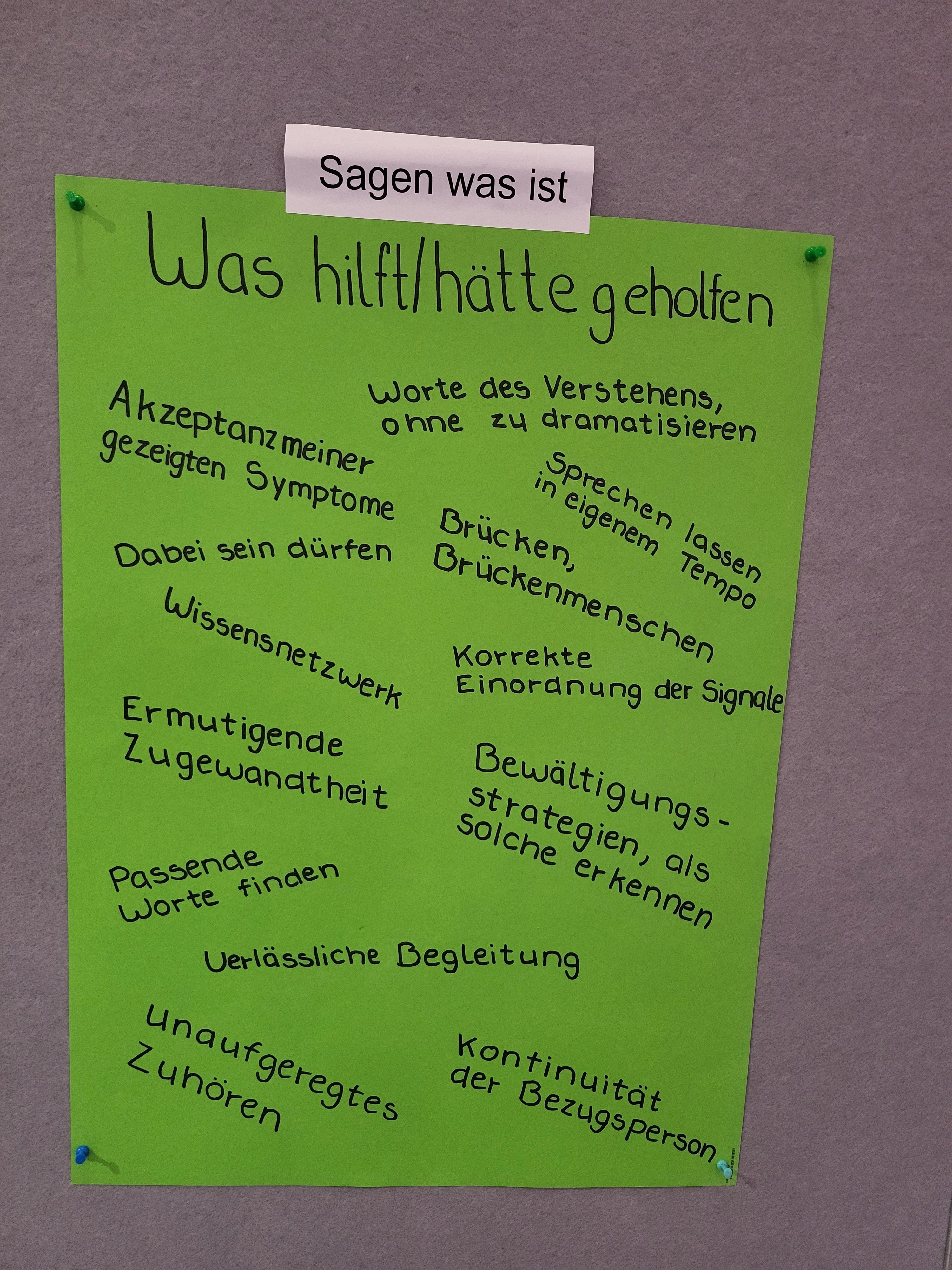 Frau MariaAndrea Winter, pädagogische Fachkraft Arbeitserziehung/Arbeitstherapie, Hilfefondberaterin und Betroffenenbeirätin im Verein Feuervogel und in der Selbsthilfe seit Jahren auch bundesweit aktiv, stellte in ihren Vortrag zwei Fallbeispiele in den Mittelpunkt. Sie ließ die Betroffene selbst zur Wort kommen. In diesem eindrucksvollen Beitrag war die gespannte Aufmerksamkeit der Teilnehmenden im Raum greifbar: es war mucksmäuschenstill. Sie gab den Betroffenen eine Stimme, da „erlebte sexualisierte Gewalt häufig unaussprechlich bleibt,“ so Winter.