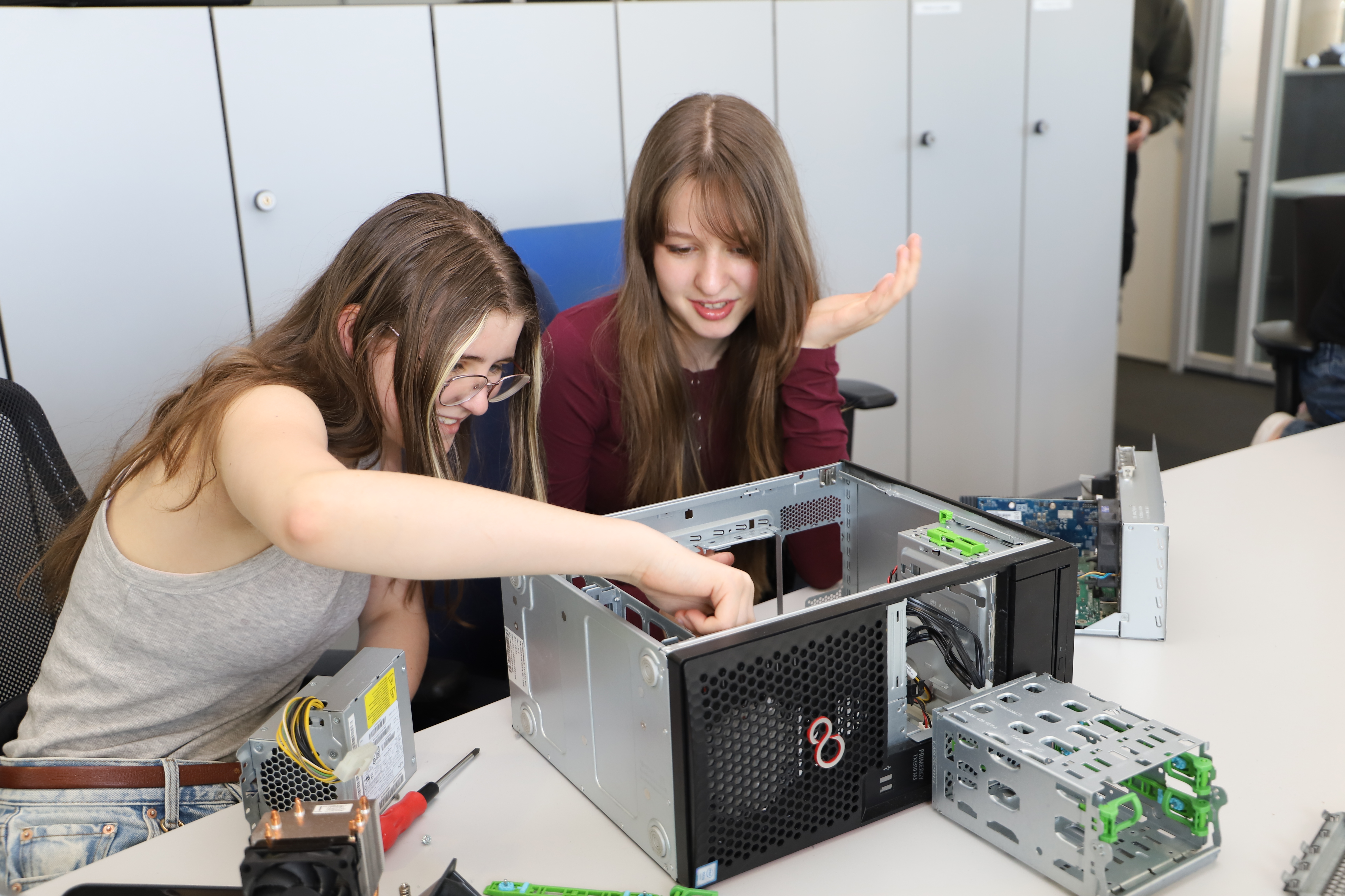Emilia Klingmann ist seit zwei Jahren als einzige Frau fester Bestandteil der IT-Abteilung beim Landratsamt Rastatt. „Es ist längst an der Zeit, die Rollenklischees aufzubrechen“, so Klingmann. Umso mehr habe sie sich darüber gefreut, am ,,Girls’ und Boys’ Day’’ vier jungen Mädchen die Welt der Informationstechnologie näherbringen zu können. Die Schülerinnen erhielten Einblicke in das Programmieren, besichtigten die Serverräume, lernten Grundlagen der IT-Verkabelung kennen, erstellten eine eigene Webseite und setzten sich praktisch mit der Hardware auseinander, indem sie Computer zerlegten und wieder zusammenbauten.